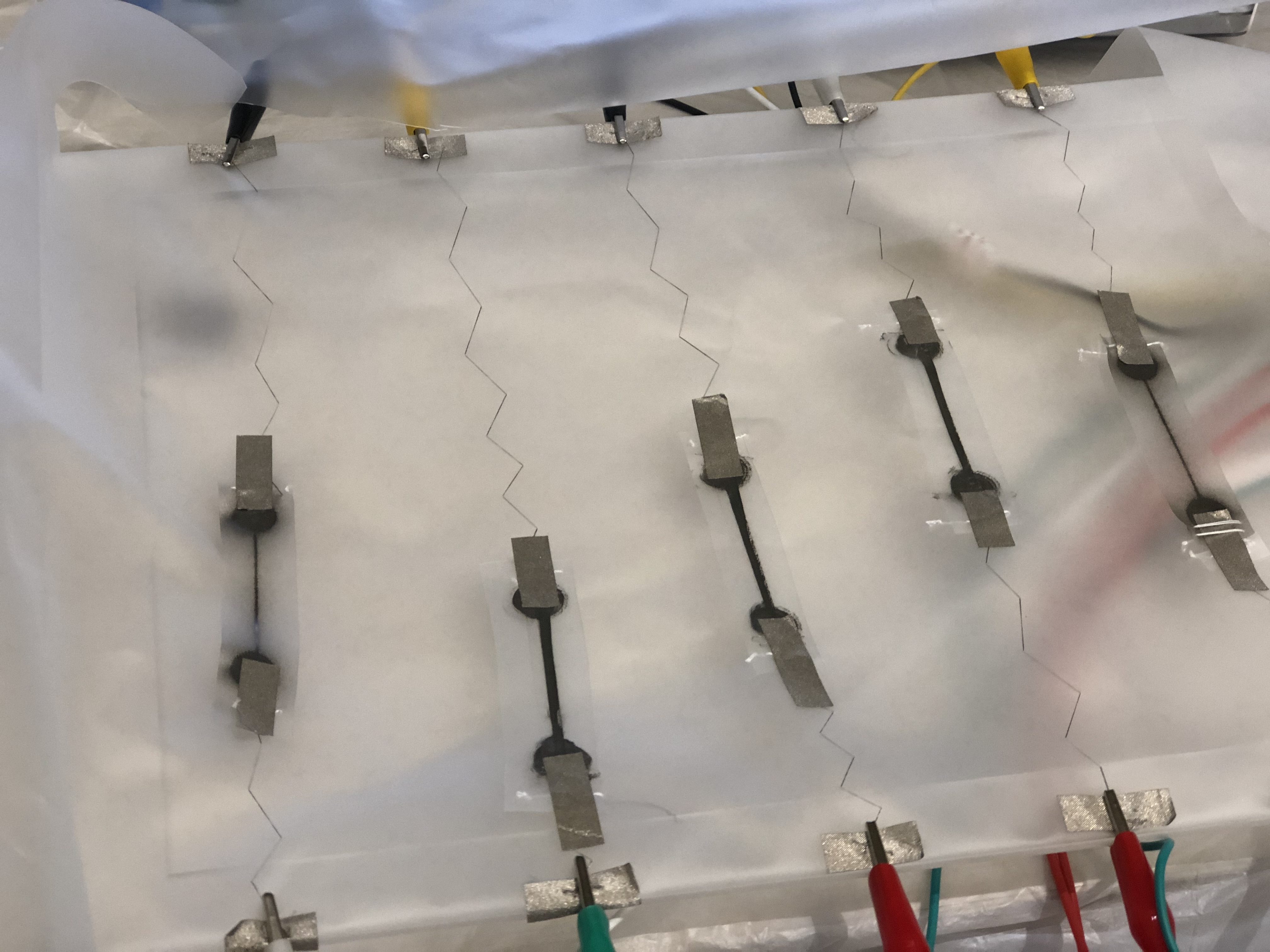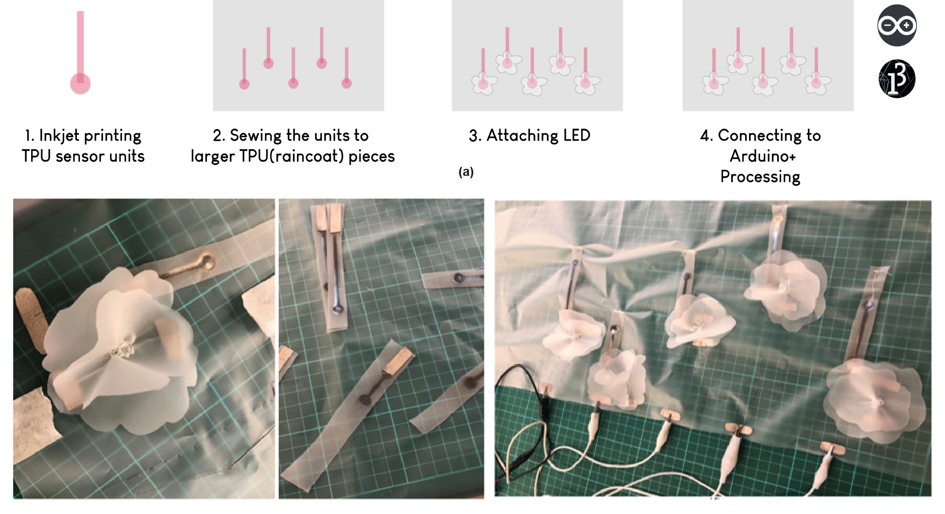 TPU, poking, stroking, manufacturing process. Conductive ink on TPU fabric surface.